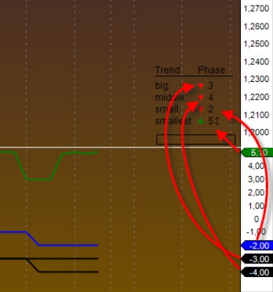 The output value is the phase in the specific trend (1, 2, 3, 4, 5, 5.1, 5.2, 5.3 / as well as the negative values when short direction, see screenshot)