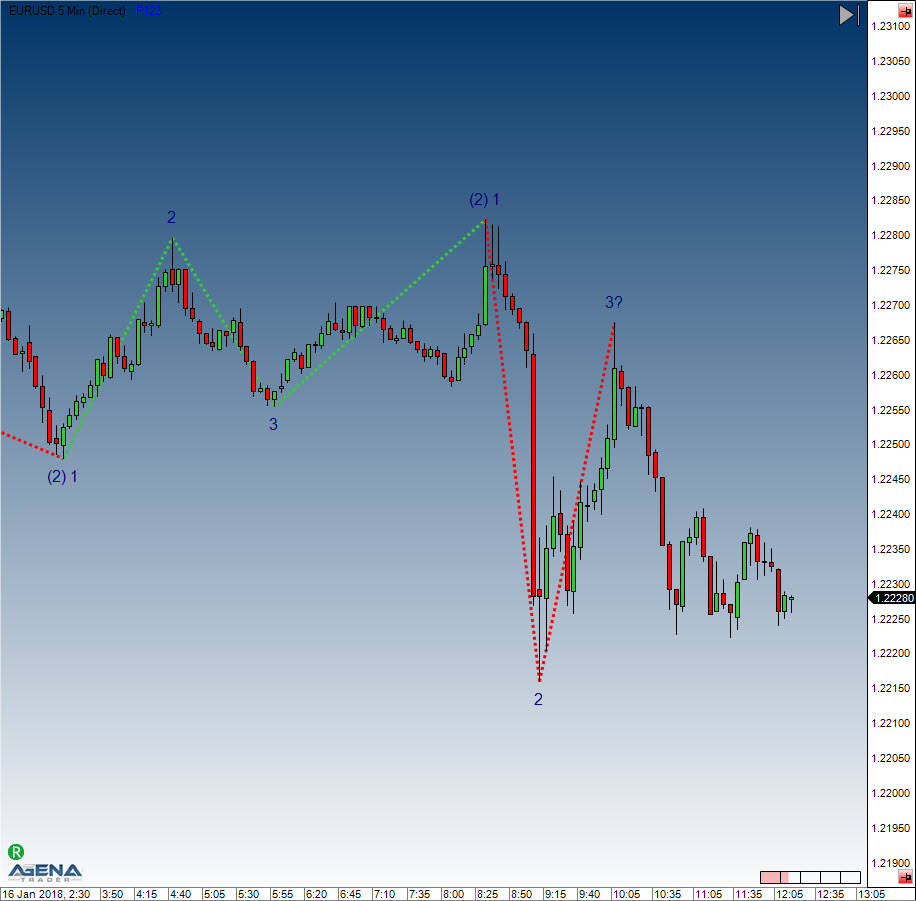 The depiction in the chart may change with the changing market movements. If the market moves below the last point 3 and breaks the uptrend, the point is marked with a “3?”. The newly created low becomes the new point 2 and the last point 2 becomes point 1.
