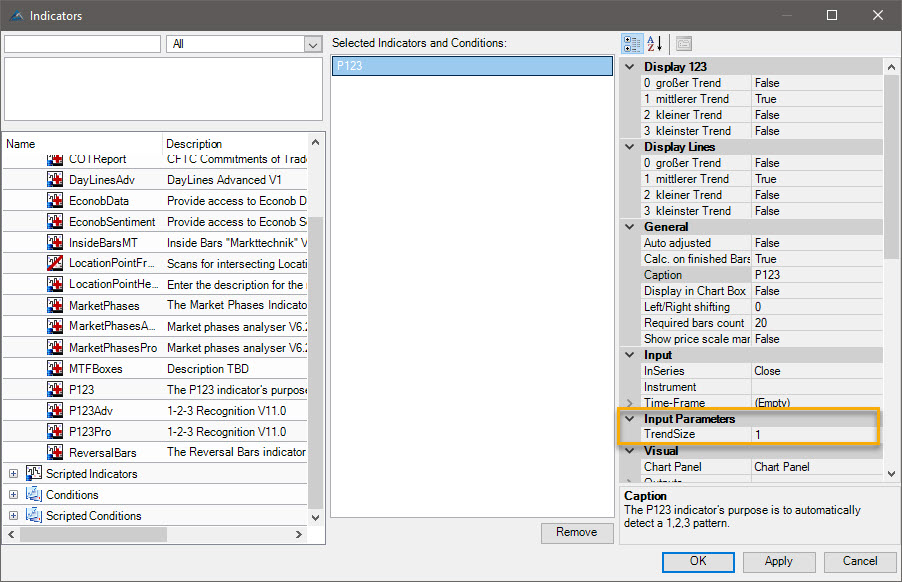 The goal of the P123 indicator is to automatically detect a 1-2-3 pattern.