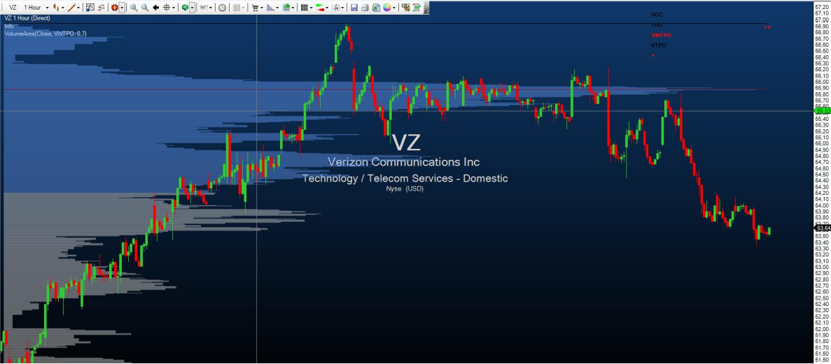 Similarly, with this indicator you can also have your own volume profiles displayed. Here you can now determine the start and end time completely freely by clicking on your desired position. There are no restrictions as to where the calculation should start and end. In the upper right corner you have the setting options with which you can switch between the profile types (for a description of these, read more under VolumeSessionPro). With a click on the little red “+” under the profile settings, you can add a further volume profile to your chart; you do so by once again determining the start and end time by left-clicking. The settings and the display of the indicator are exactly equivalent to the VolumeSessionPro: via ProfileType you select which calculation method should be used; via ValueArea you determine the percentage for what portion of the volume area should be colored with the highest activity. The most effective way of working with the VolumeArea is to place this indicator in the action bar and assign it a hot key. In this way, if necessary, the indicator can be quickly called up and you can specify the desired volume area.
