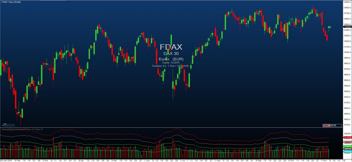 The VolumeKeltnerChannels are a great tool to determine very high or very low volume in comparison to past periods. Beginning with an upper Keltner channel line calculated with volume data, this line is shifted ever further upwards or downwards using special multipliers. Volume that is higher than the highest Keltner channel line can be interpreted as extremely high volume that shows that huge numbers of trades have been carried out in the current price period and that an unusually large number of traders are buying or selling positions at the current price level.