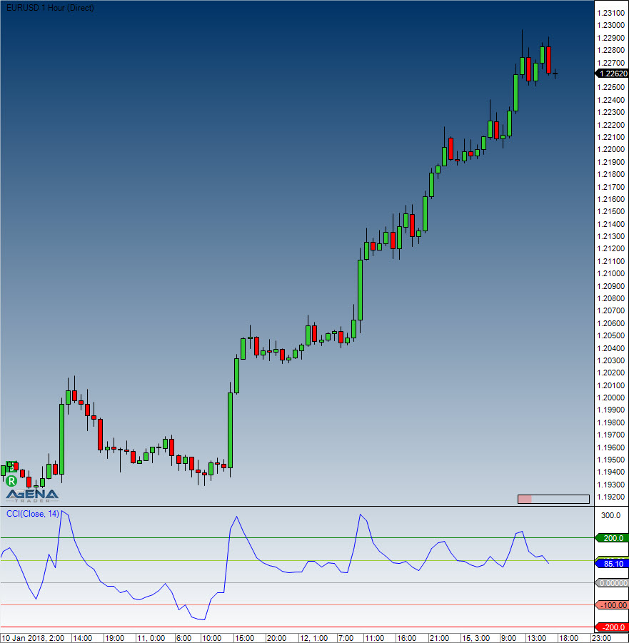 CCI measures the difference between a securitys price change and its average price change. High positive readings indicate that prices are well above their average, which is a show of strength. Low negative readings indicate that prices are well below their average, which is a show of weakness.