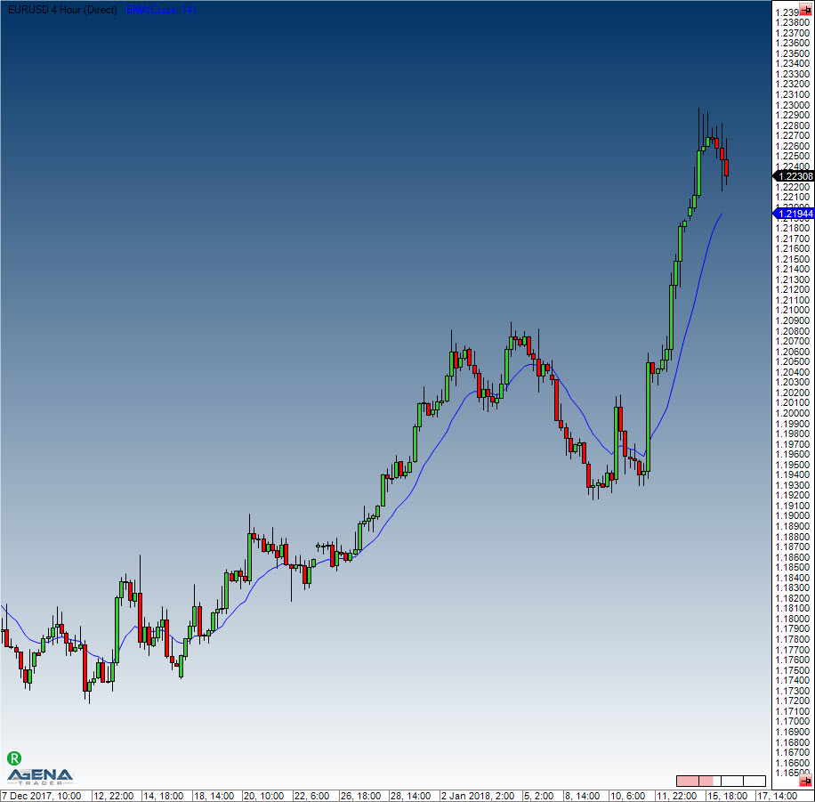 If the price rises sharply and moves away quickly from the respective EMA line, it is possible to enter countertrend positions in order to profit from the potential return to the moving average. General interpretations of the moving averages also apply to the EMA.