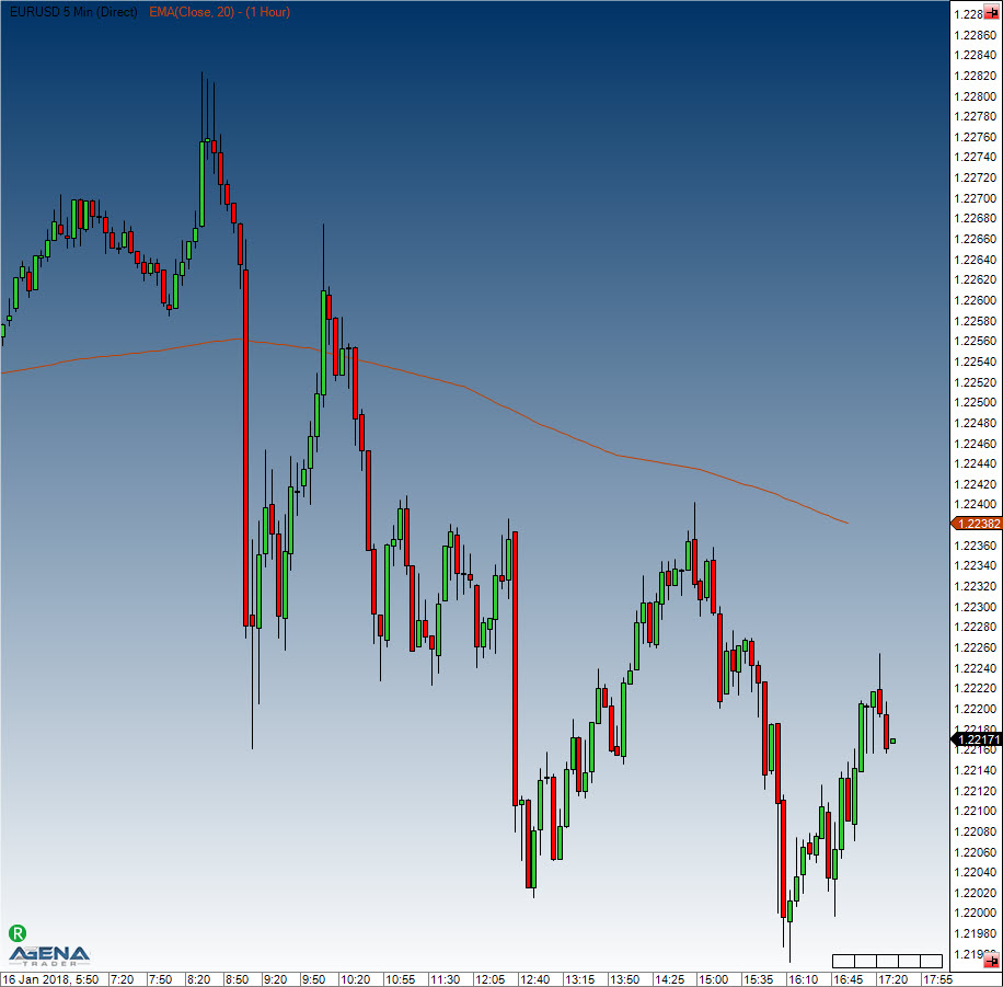 A 5-minute chart with an EMA(20) calculated with hourly bars as the underlying input: